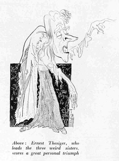 “It is Shakespeare done in the grand manner with a cast so rich in stars that one of our most distinguished actors, Mr. Ernest Thesiger, a newcomer to the company, takes the small part of the First Witch.”