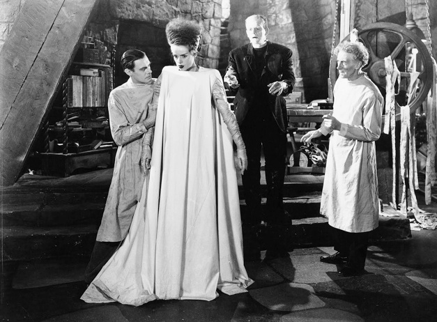 With Colin Clive, Elsa Lanchester, and Boris Karloff