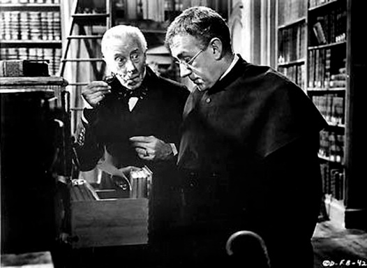 “Mr. Ernest Thesiger, who at 74 is playing the part of a 75-year-old Viscount in the film of Chesterton’s ‘Father Brown,’ was resting on the set at Riverside Studios, Hammersmith, while the camera was being moved to a new position. ‘Don’t you get bored hanging around like this?’ a visitor asked him. ‘My dear sir,’ replied Mr. Thesiger, ‘nowadays actors are paid for patience, not talent.’”